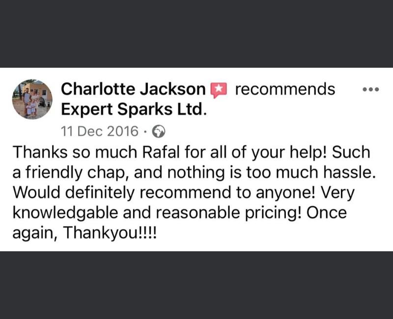 Expert Spark offer 36 months warranty for our labour and a minimum of 12 months for parts and materials. The warranty for parts and materials is provided by manufacturers and can be longer on some items.