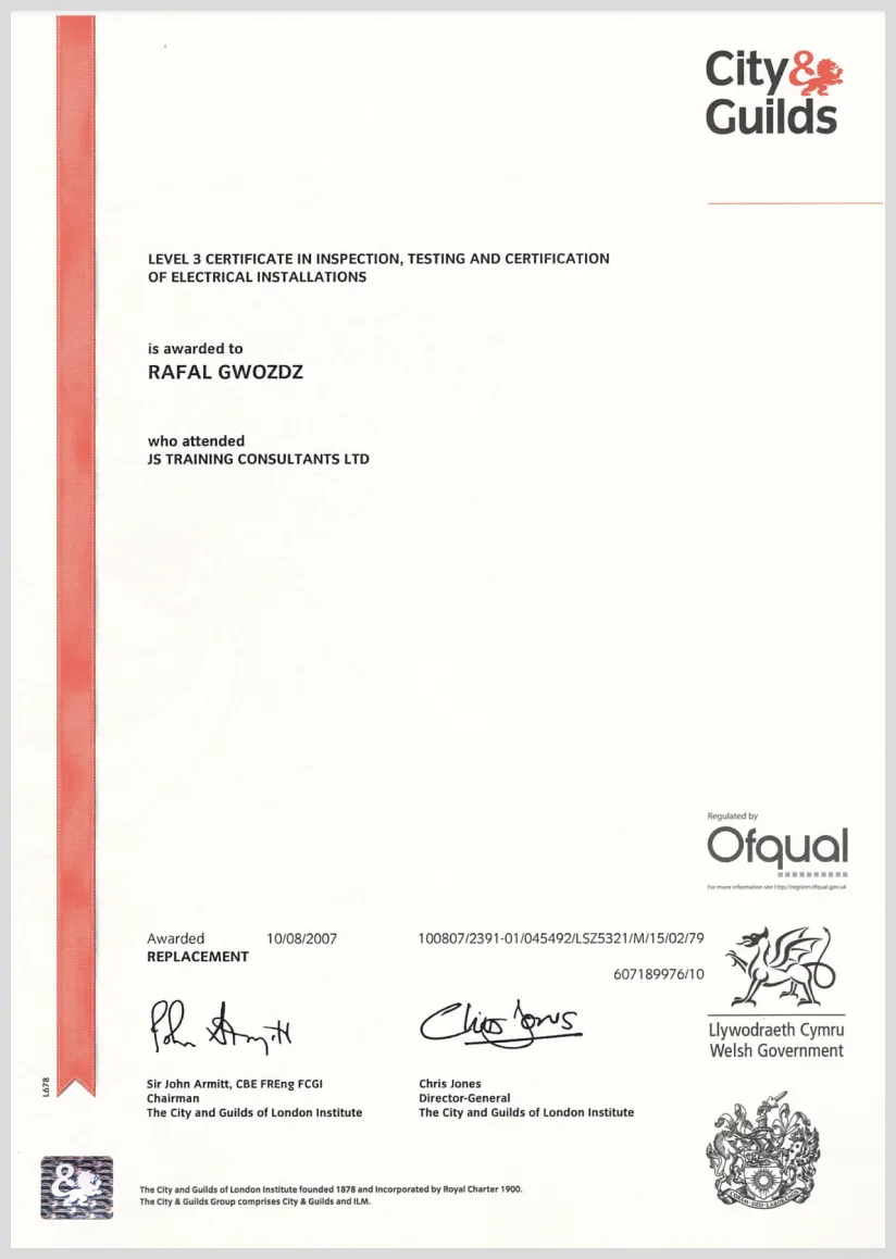 NICEIC & Part P (building regs) registered. Up to date with current standards. Fully insured.